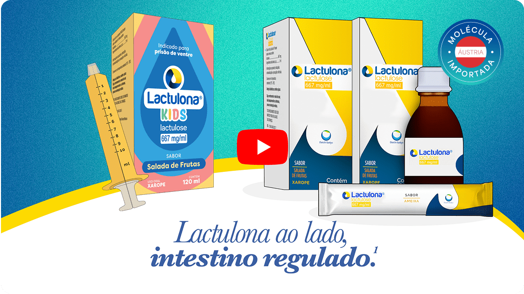 * Primeiro registro de Lactulona concedido em 1984. ** Primeiro medicamento de princípio ativo lactulose com seringa dosadora. 1. Bula de Lactulona®, ANVISA, publicada em 04/11/24. 2. Brasil. Ministério da Saúde. Agência Nacional de Vigilância Sanitária. Luitpold Produtos Farmacêuticos Ltda. Lactulose xarope 667 mg/mL: processo nº 25001.013364/84. Diário Oficial da União. 3. Cao, Yuan, and Shi-Ming Liu. “Lactulose for the treatment of Chinese children with chronic constipation: A randomized controlled trial.” Medicine vol. 97,52 (2018): e13794. 4. Prasad, V G M, and Philip Abraham. “Management of chronic constipation in patients with diabetes mellitus.” Indian journal of gastroenterology : official journal of the Indian Society of Gastroenterology vol. 36,1 (2017): 11-22. 5. AGÊNCIA NACIONAL DE VIGILÂNCIA SANITÁRIA (ANVISA). Consultas - Medicamentos. Disponível em: https://consultas.anvisa.gov.br/#/medicamentos/q/?substancia=5790. MP-00000. Agosto/2025.